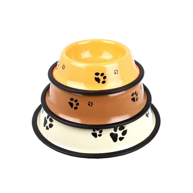 Hijyenik paslanmaz çelikten yapılmış, tabanı kaymaz halka ile çevrili, köpekler ve kediler için mama kabı.