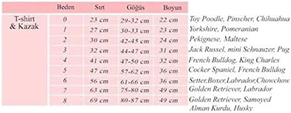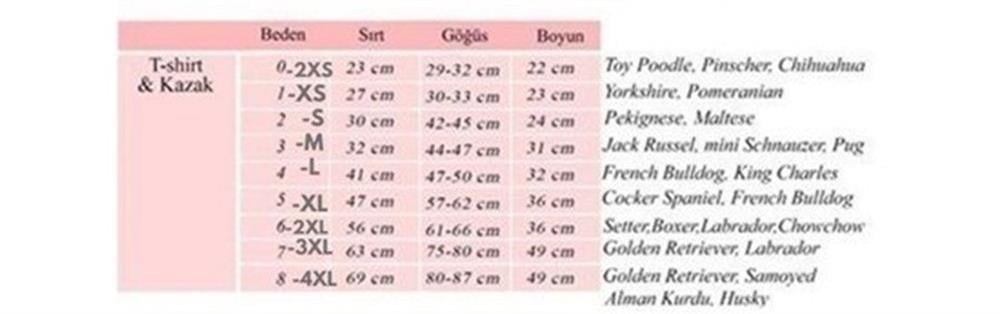 Ölçü tablosunda yer alan kilo/ırk ölçüleri tahmini olarak verilmiştir. Lütfen köpeğinizin göğüs çevresi ve sırt uzunluğuna göre satın alınız.