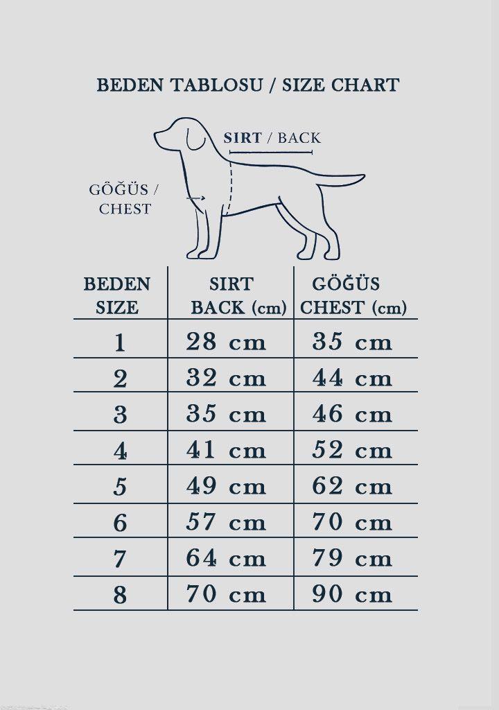 Bu nedenle lütfen köpeğinizin göğüs çevresi ve sırt uzunluğu ölçülerini alarak sipariş veriniz.