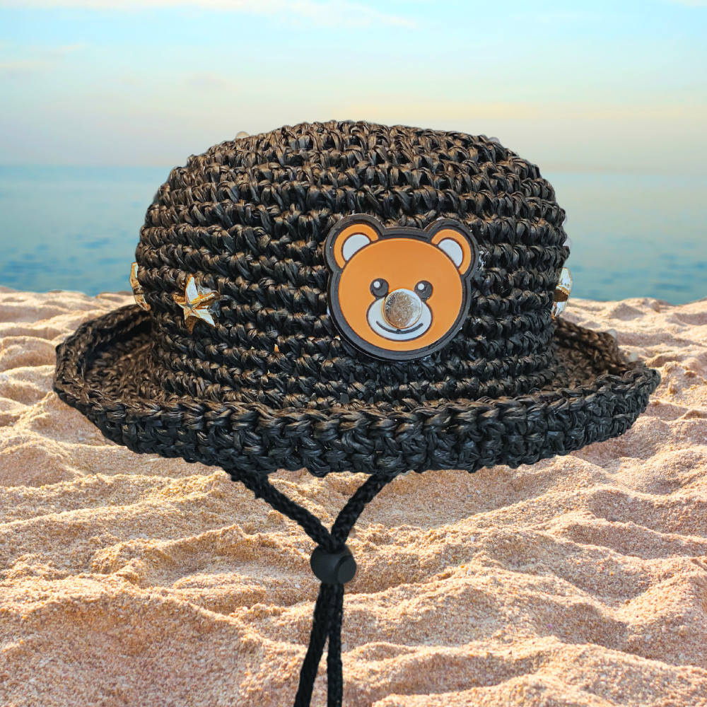 Naturel el örmesi, hasır şapkanın dokuması, fötr koruması ve alt tarafındaki bağlama detayı ile hem tatlı hem kullanışlı.