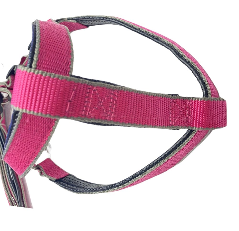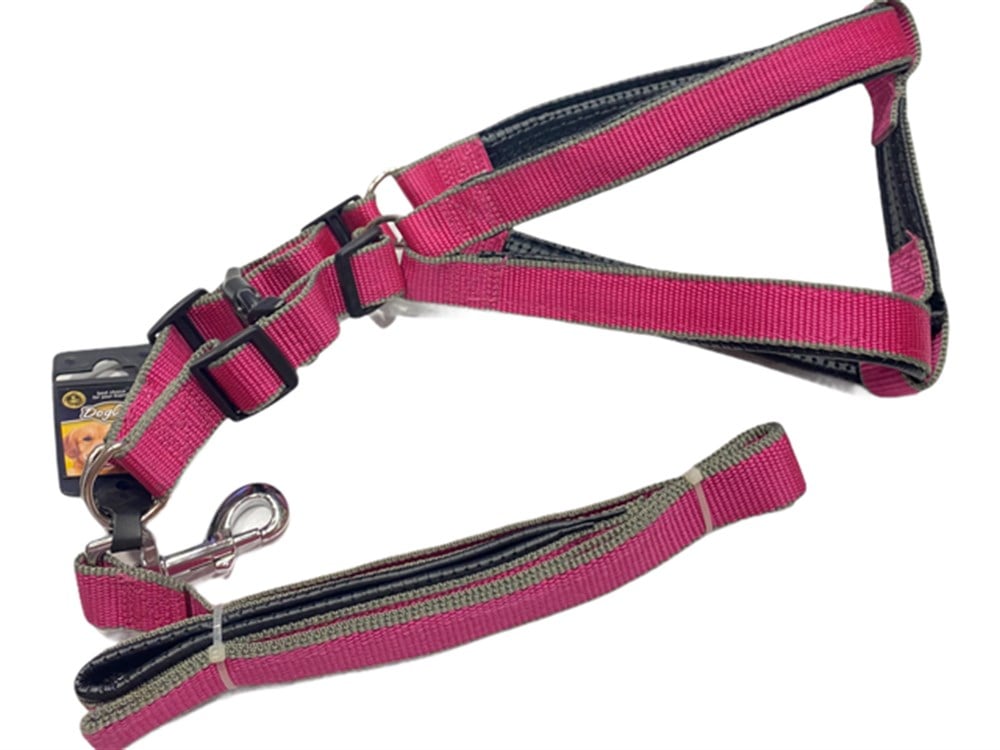 Büyük Boy Pembe Yumuşak Dokulu Göğüs Tasması ve Gezdirme Kayışı Seti (70 cm göğüs)