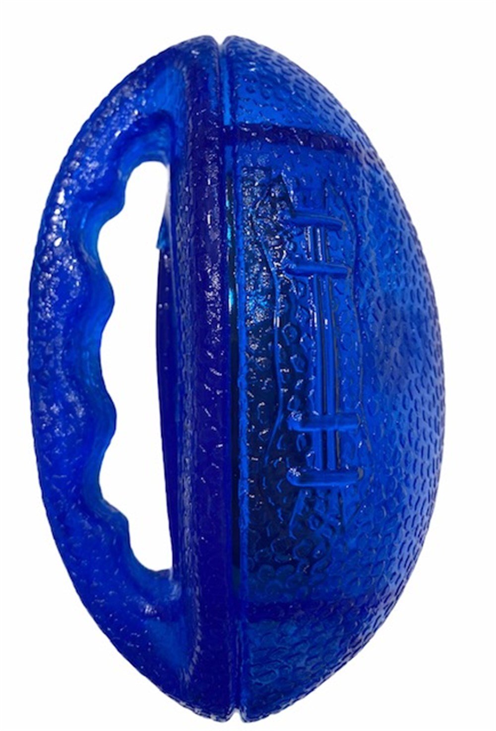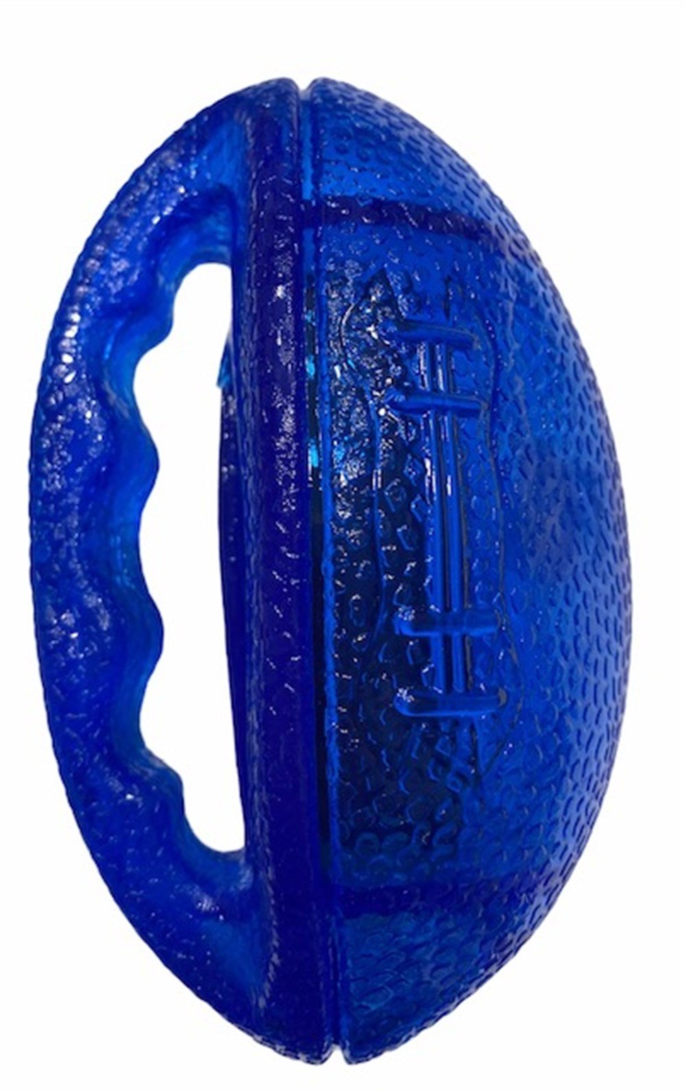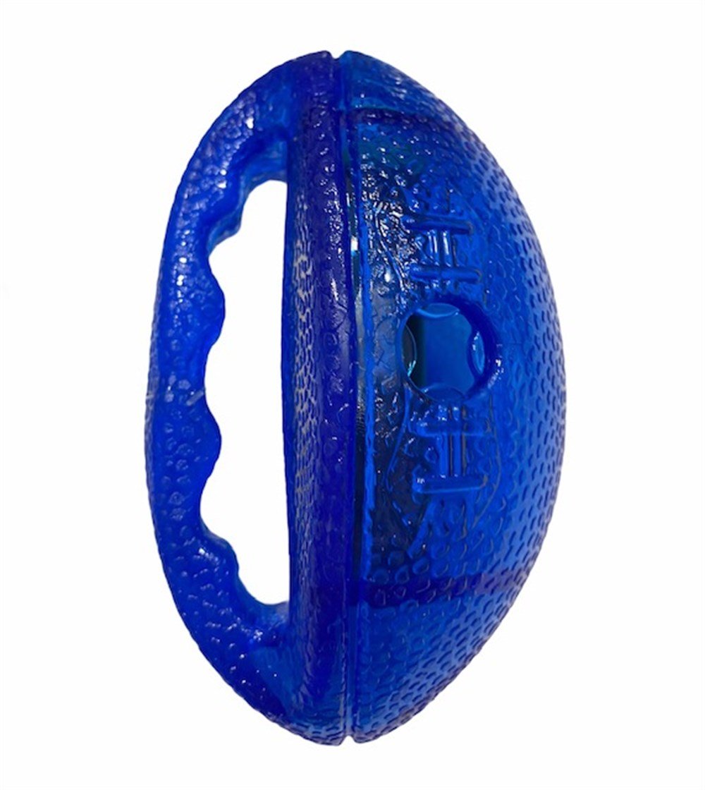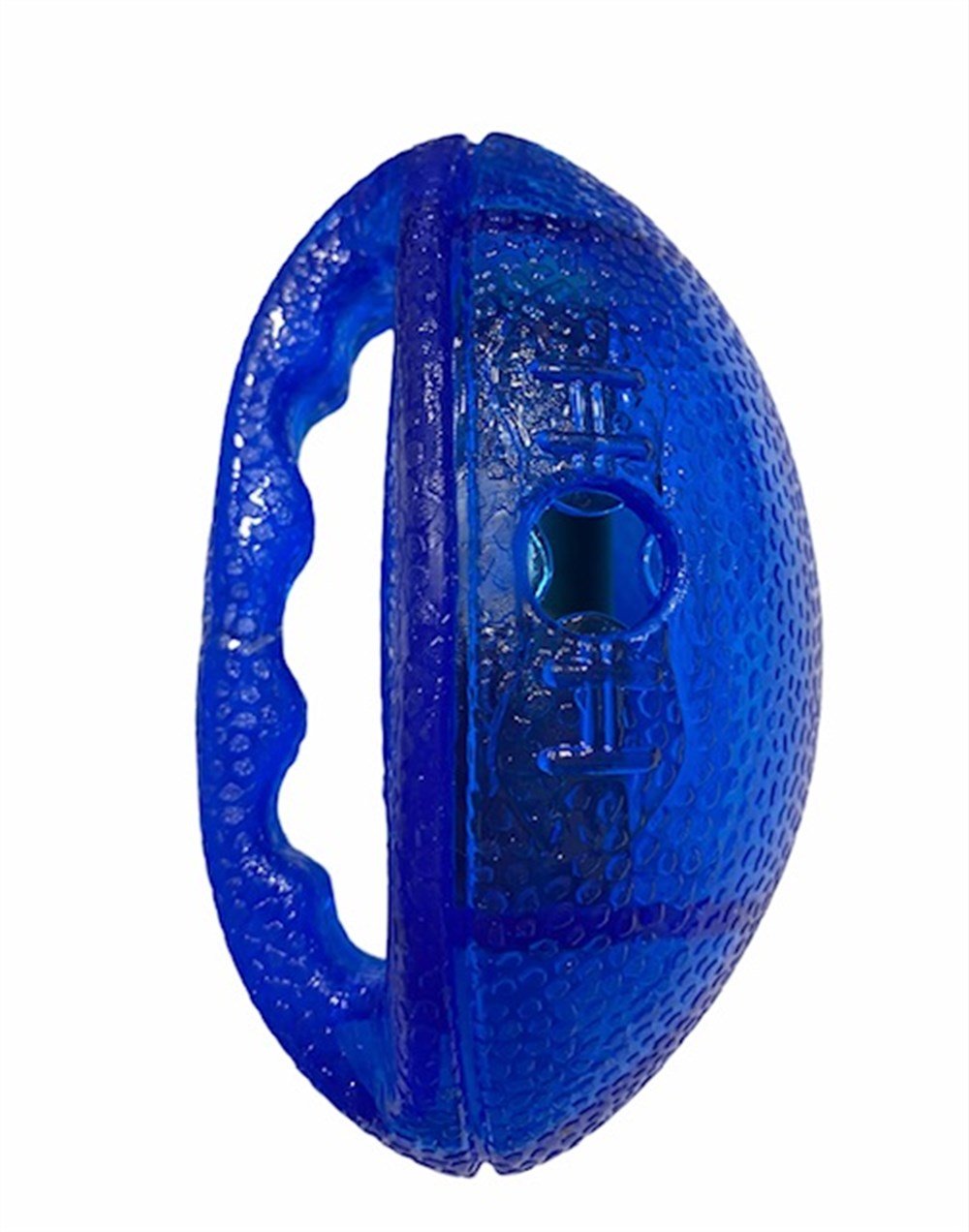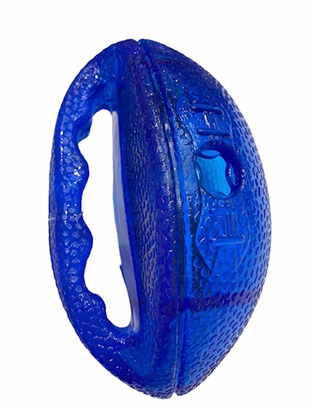 Gıcırtılı ve Tutmaçlı Mavi Kauçuk Rugby Topu Köpek Oyuncağı: 15 cm