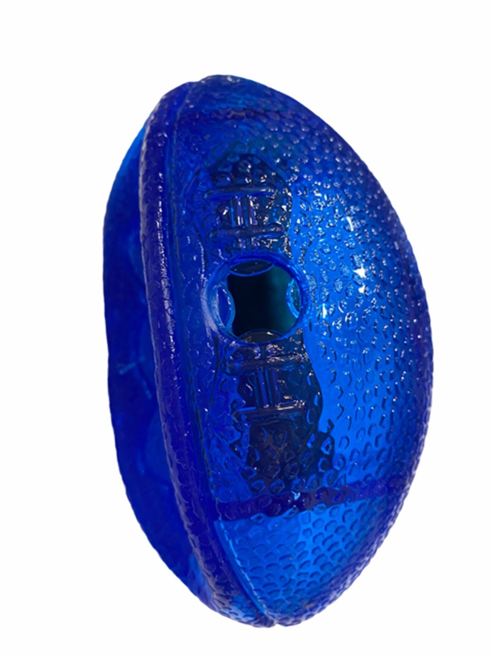 Köpekler için, salladıkça ses çıkartan, elde tutma bölümü olan TPR rugby top oyuncağı