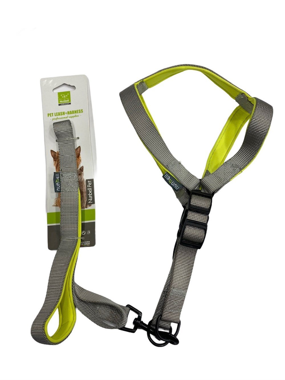 Gri - Sarı Köpek Tasma Seti 2 cm - 120 cm (45 cm göğüs)