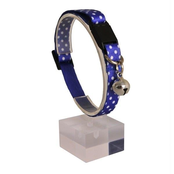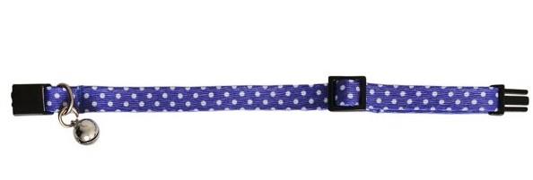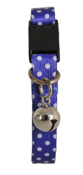 Güvenlik Kilitli Lacivert Beyaz Puantiyeli Zilli Kedi Boyun Tasması, 22-30 cm