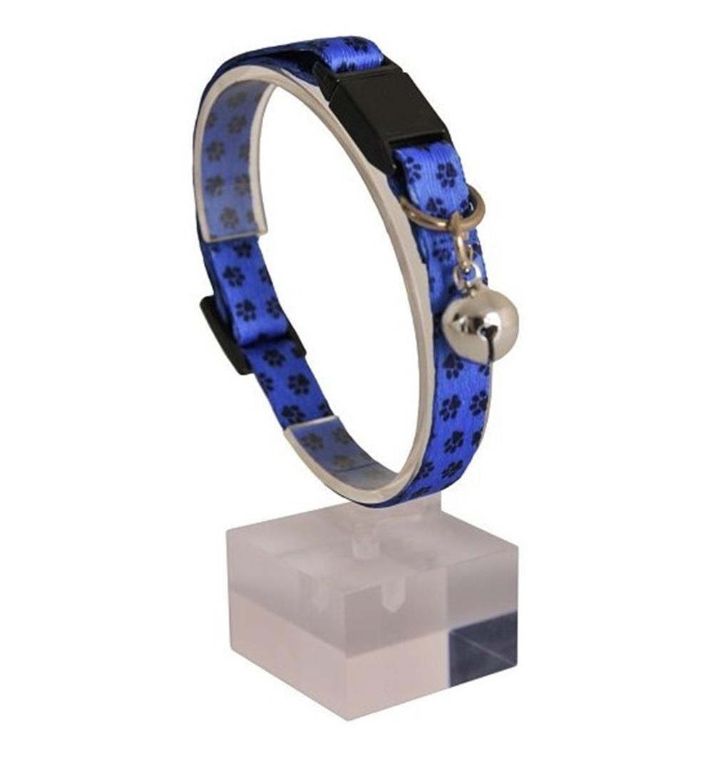 Desenli ve çıngıraklı ayarlanabilir kedi boyun tasması.