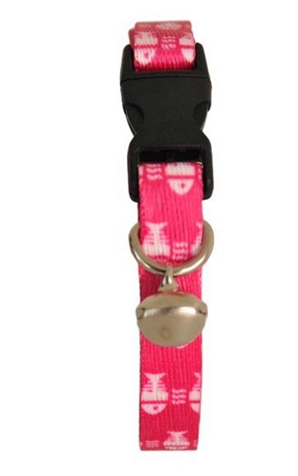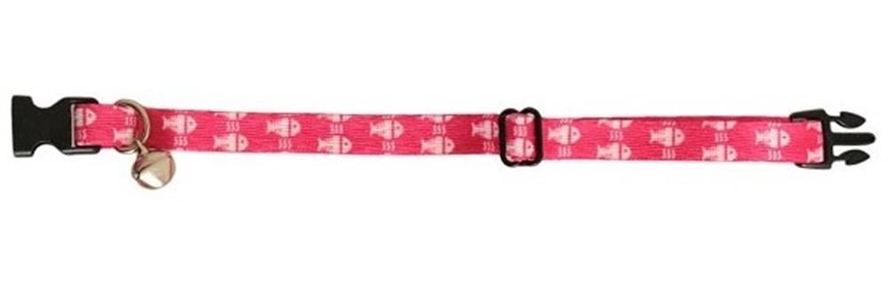 Güvenlik Kilitli Pembe Balıklı Zilli Kedi Boyun Tasması, 22-30 cm