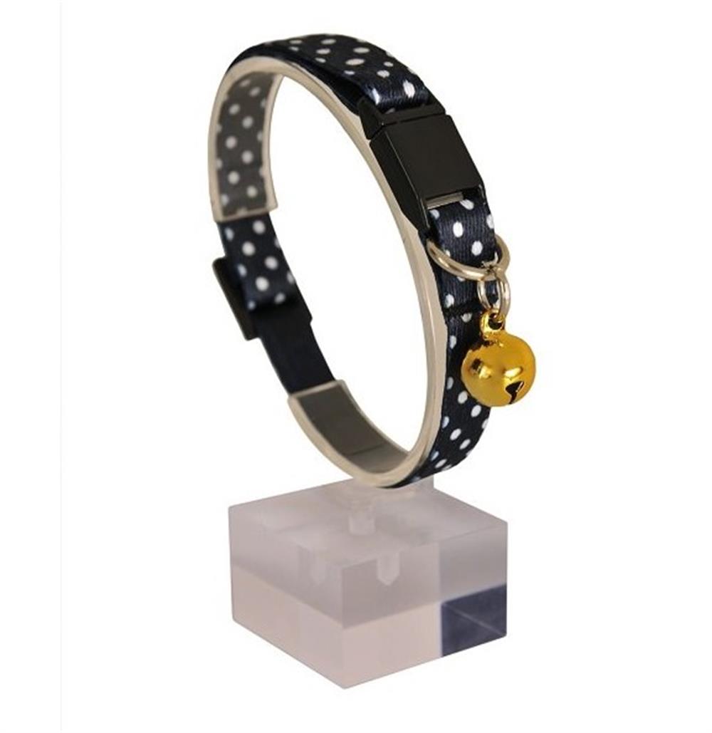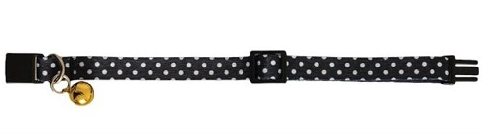 Güvenlik Kilitli Siyah Beyaz Puantiyeli Zilli Kedi Boyun Tasması, 22-30 cm