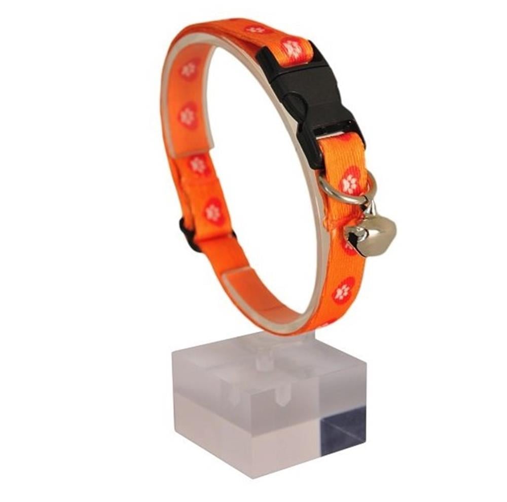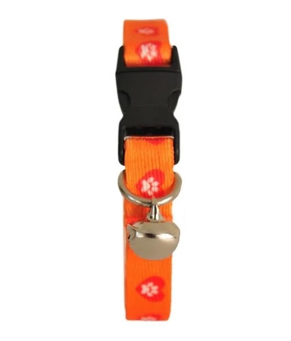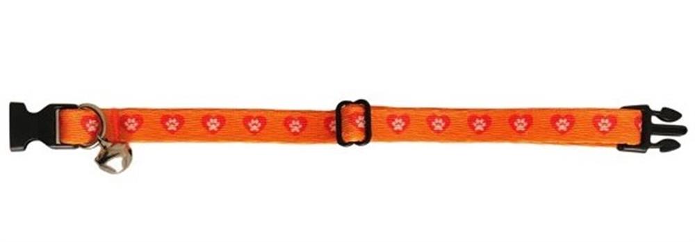 Güvenlik Kilitli Turuncu Kalpli Patili Zilli Kedi Boyun Tasması, 22-30 cm