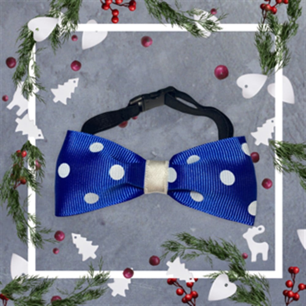 Masmavi Puantiyeli Kedi ve Köpek Papyon Tasma