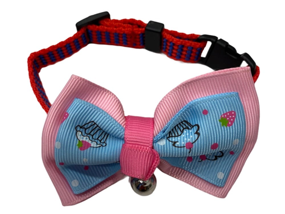 Şık, özel, papyonlu ve zilli tasma, şirin cupcake desenli