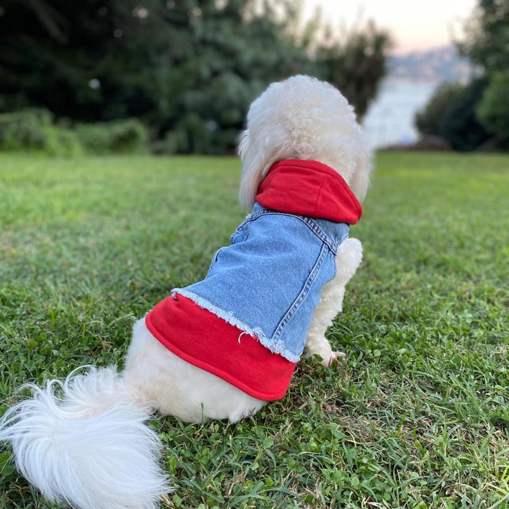 Küçük Irk Köpek için Kırmızı Sweatshirt Jean Yelek hakkında: