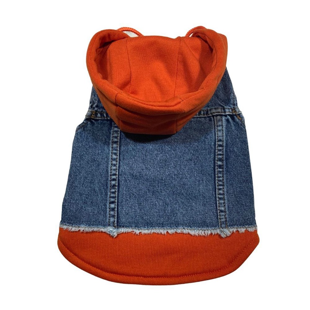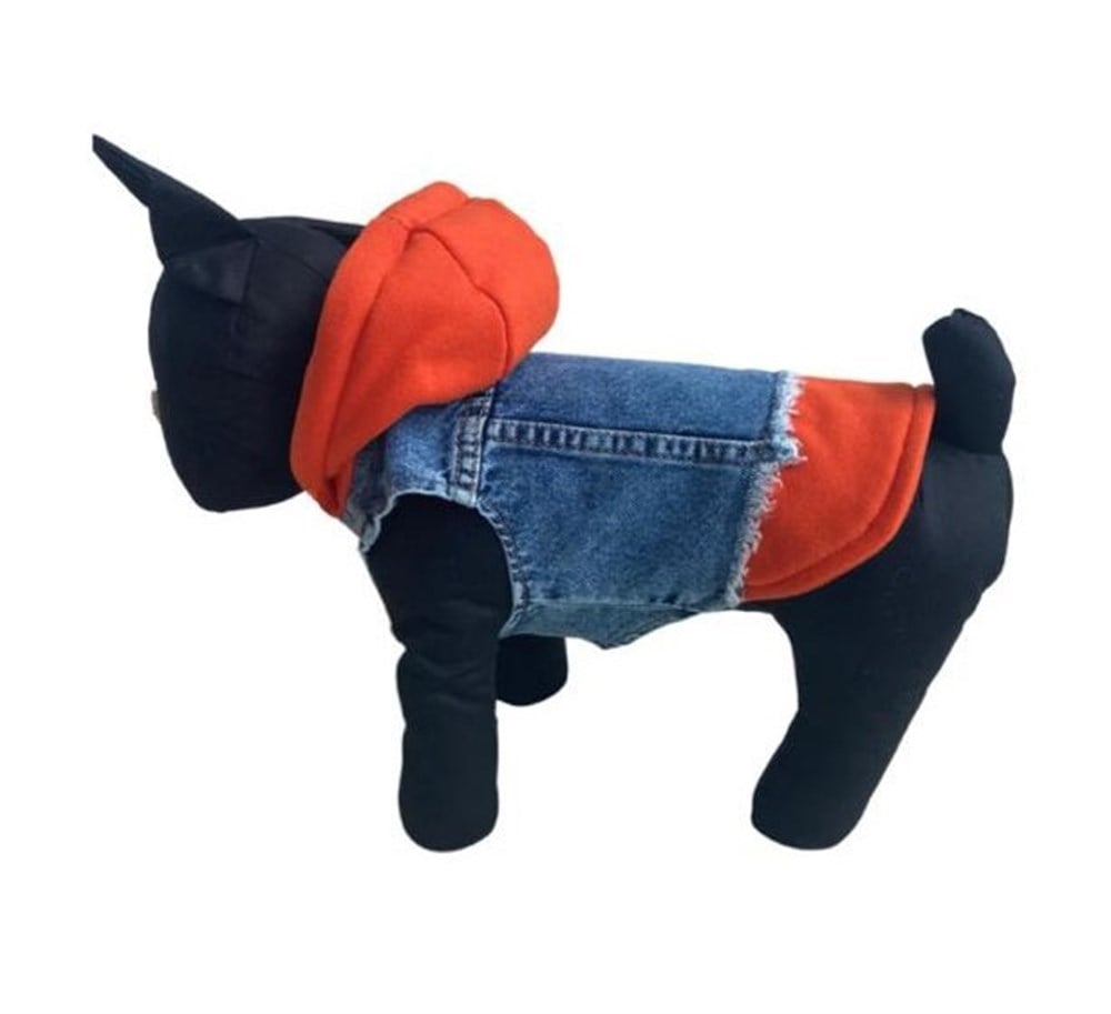 Küçük Irk Köpek için Turuncu Sweatshirt Jean Yelek hakkında: