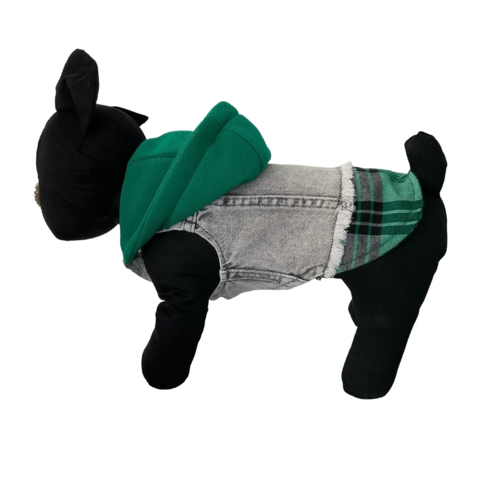 Küçük Irk Köpek için Yeşil Ekoseli Sweatshirt Jean Yelek hakkında: