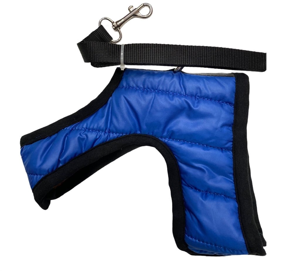 Mavi Pofuduk Yumuşacık Premium Kedi ve Köpek Gezdirme Kayışı ve Göğüs Tasma Yeleği SET M