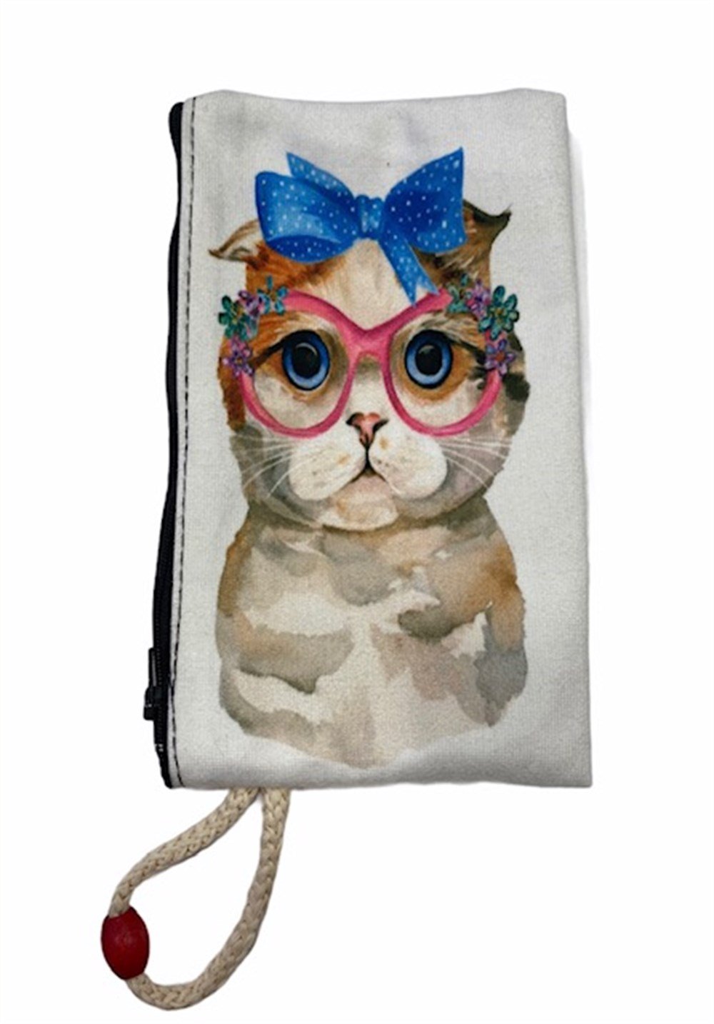 Mavi Tokalı Gözlüklü Kedi Çanta: Ödül çantası, makyaj çantası, kalem kutusu: Çok fonksiyonel!