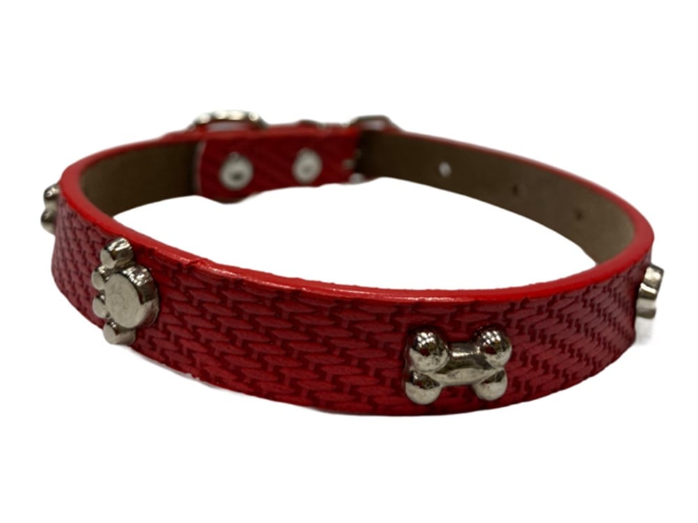 Üzerinde metal kemik ve pati süsleri olan son derece şık ve havalı bir tasma