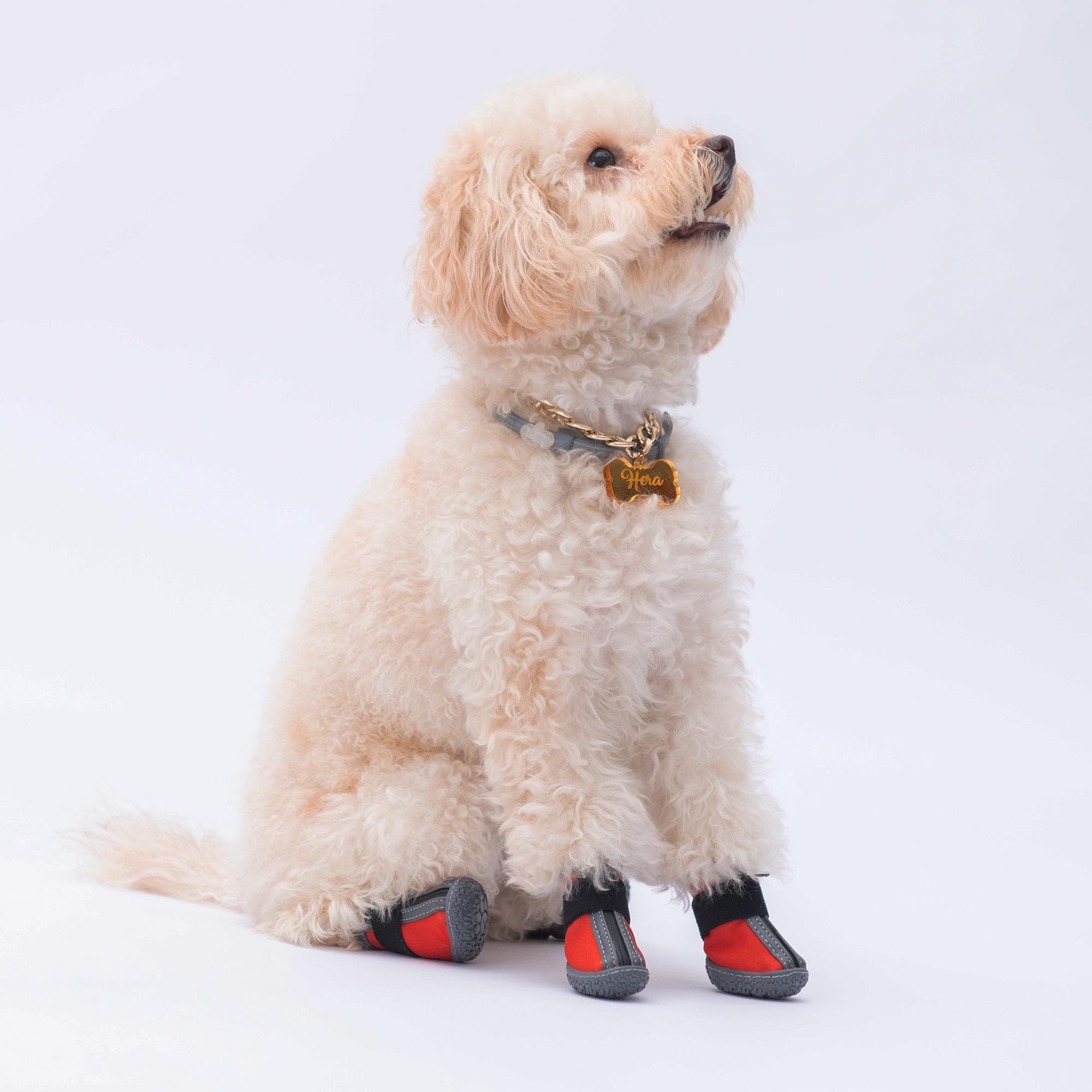 Görüntüsü şık bot şeklinde üretilmiş köpek ayakkabısıdır.