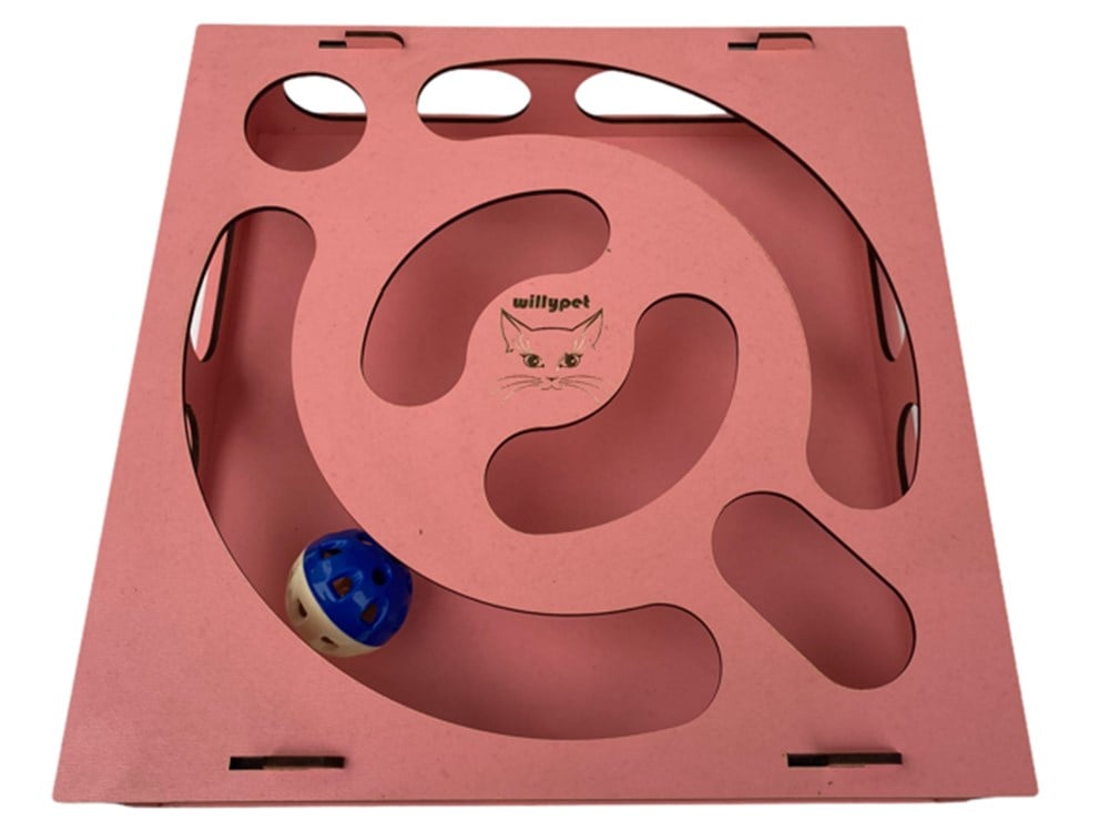 Pembe Ahşap Labirent Kedi Oyuncağı