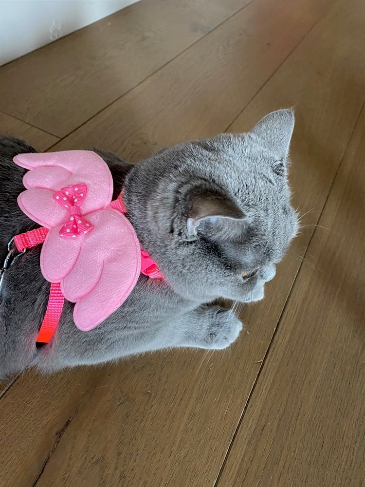 Melek kanatlı göğüs tasmasının köpeğinizin ve kedinizin tüm gezdirme kayışlarına uyumlu olacak şekilde takma aparatı mevcuttur.