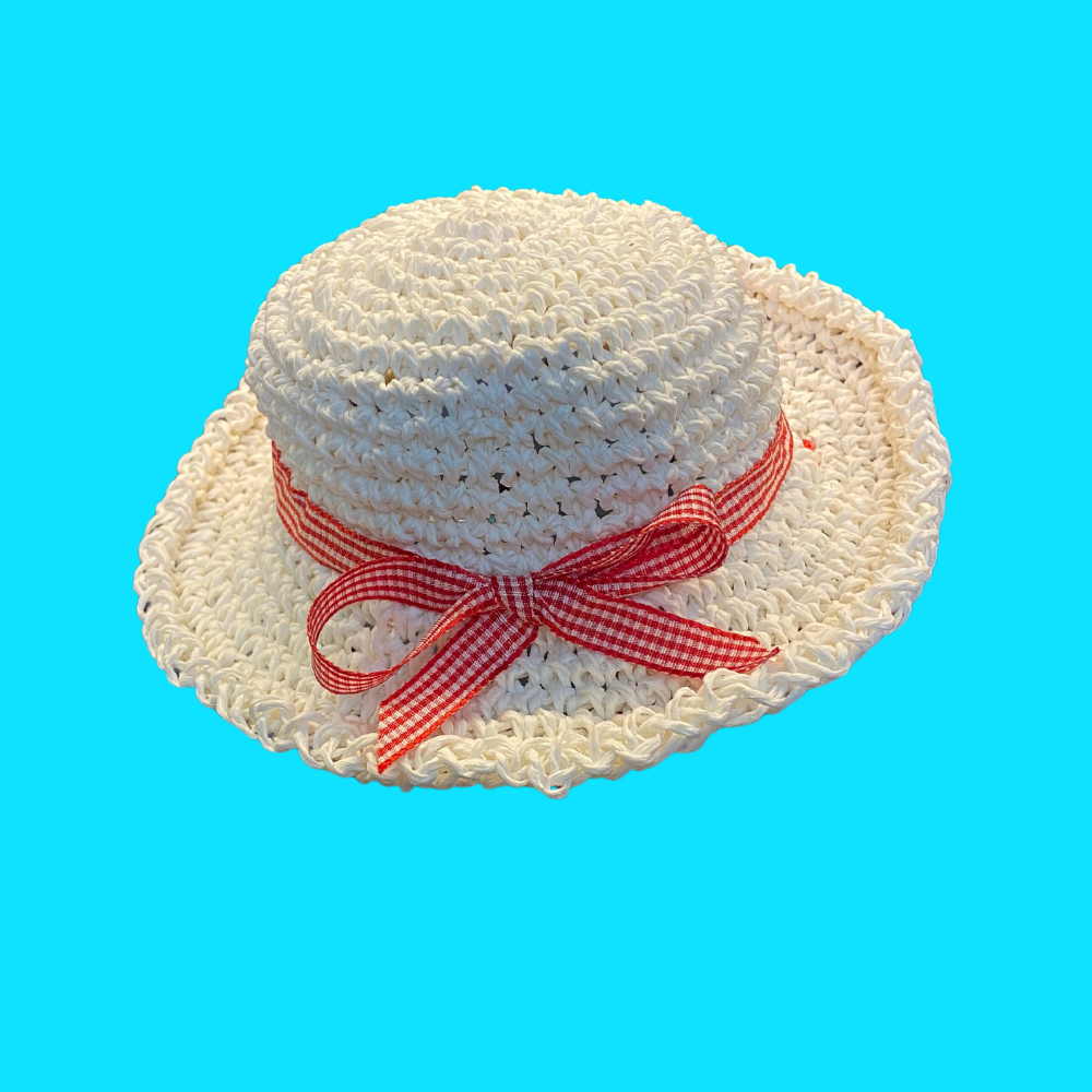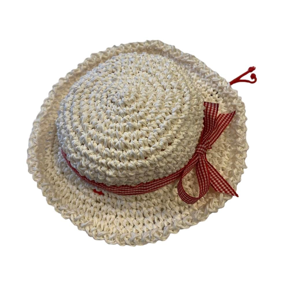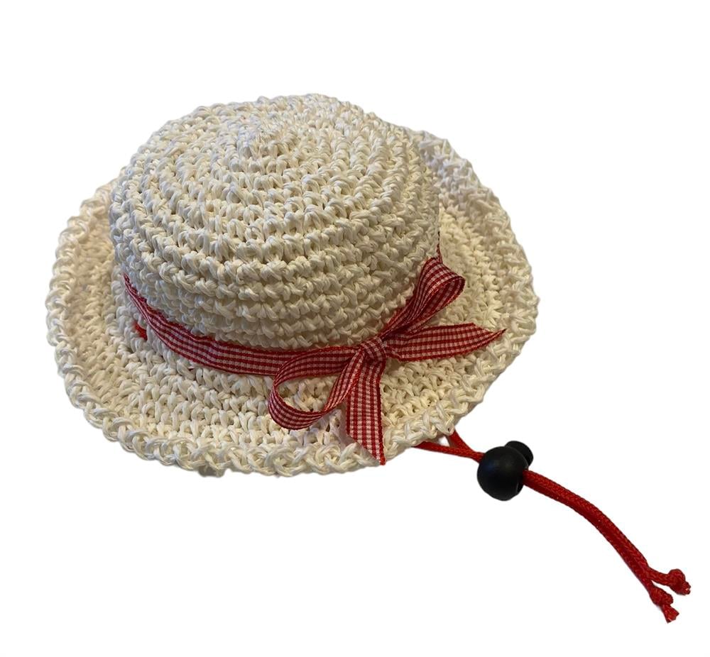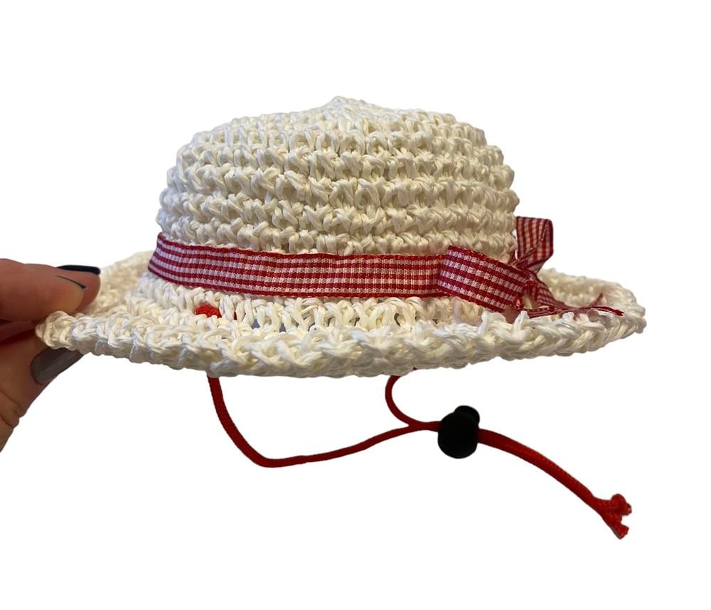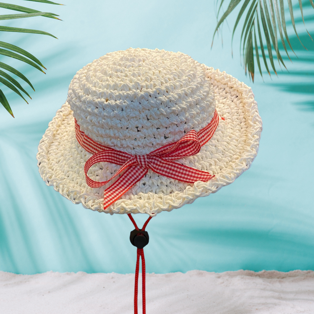 Red White Ribbon Yazlık Hasır Köpek Şapkası 17 cm