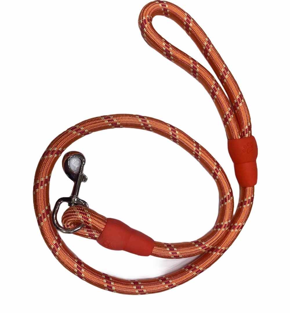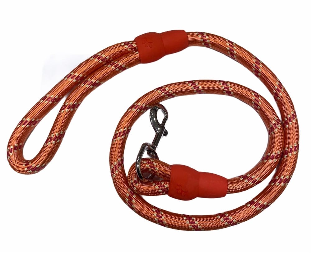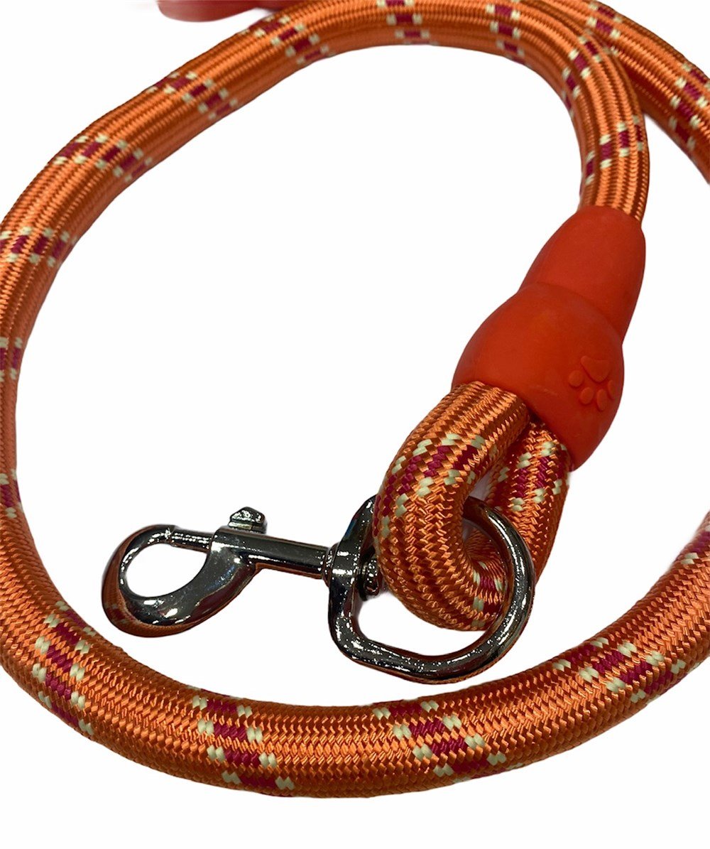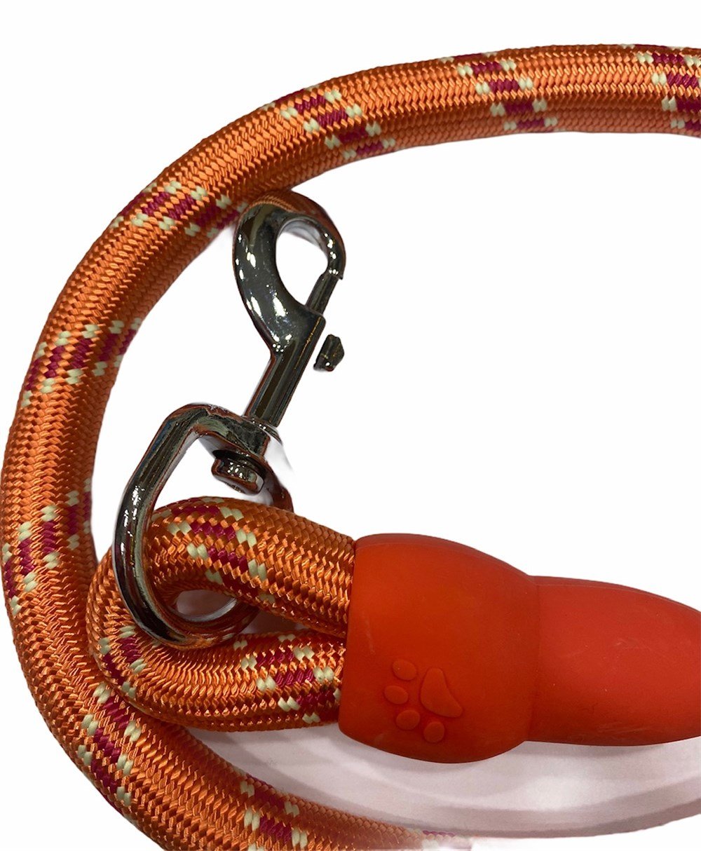 Orta ve Büyük Irklar için uygun, reflektörlü, turuncu kalın fitil gezdirme kayışı.