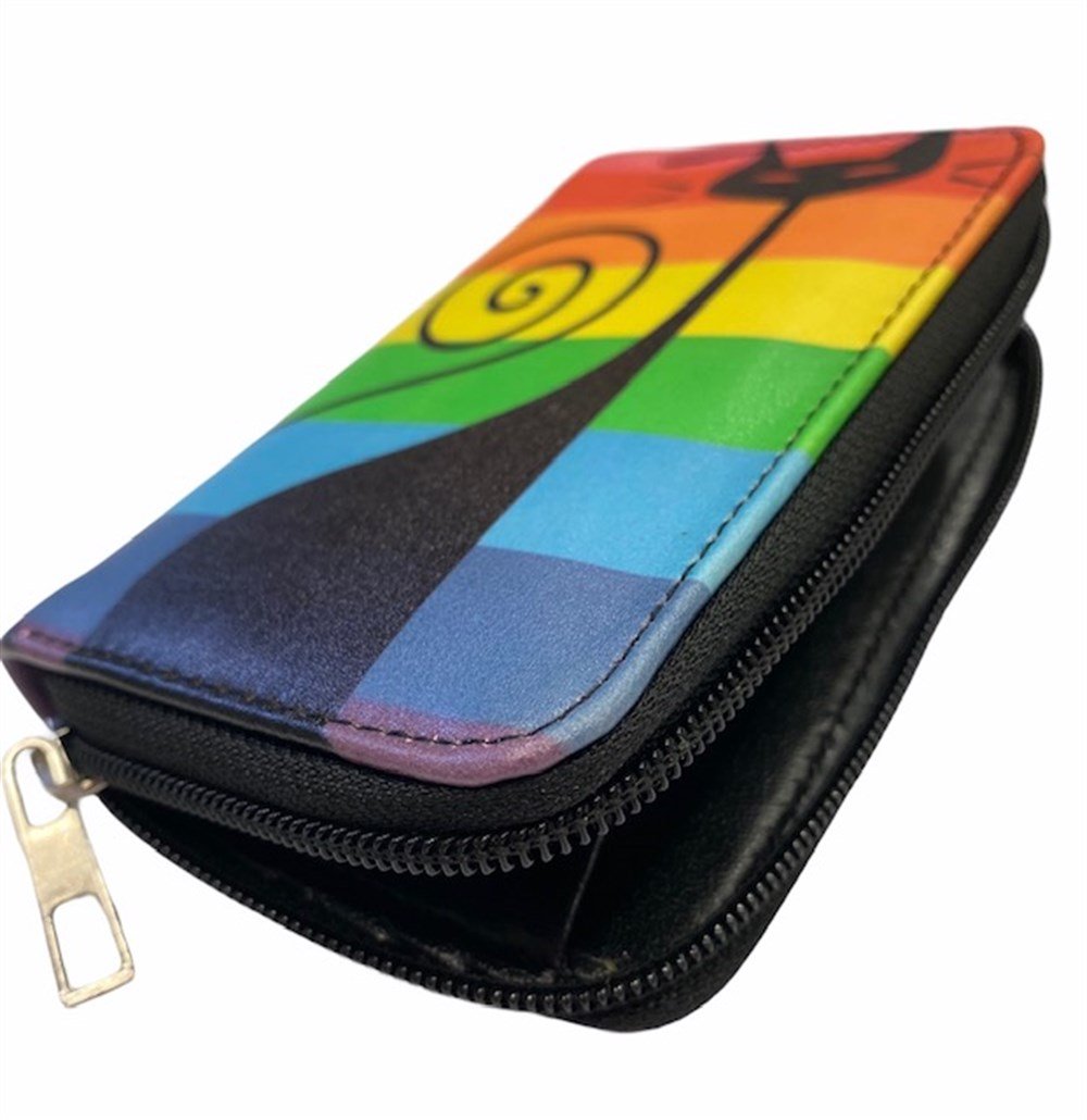 içinde 6 adet kart bölümü olan, fermuarlı, rengarenk cüzdan.
