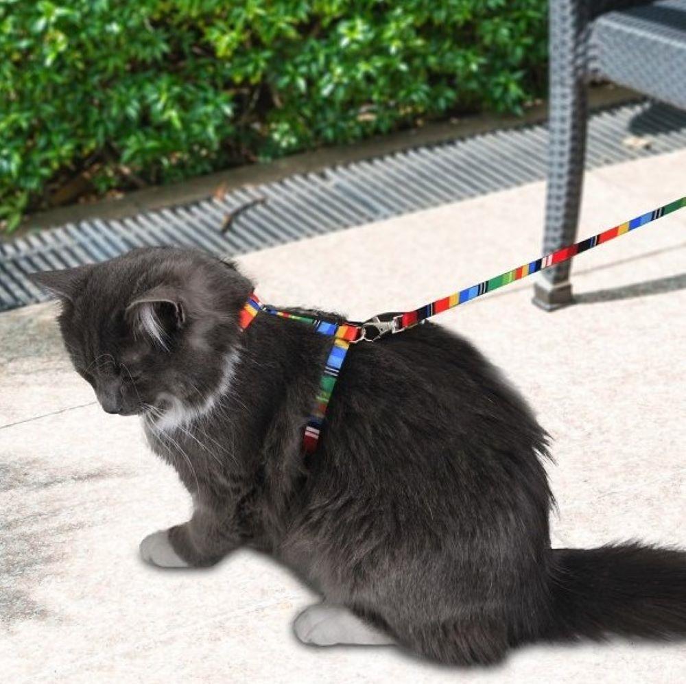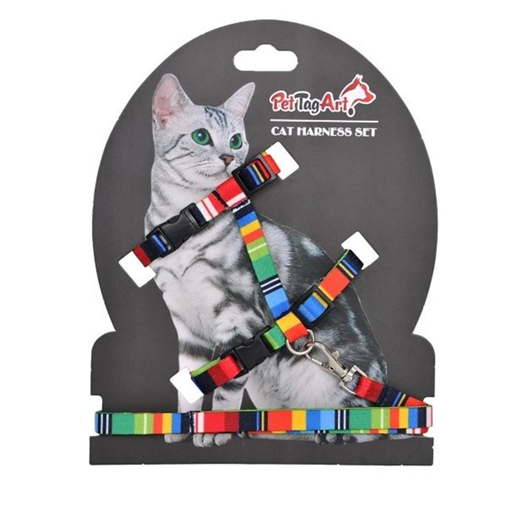 Renkli Desenli Ayarlanabilir Kedi Göğüs Tasma Seti 10 mm 110 cm