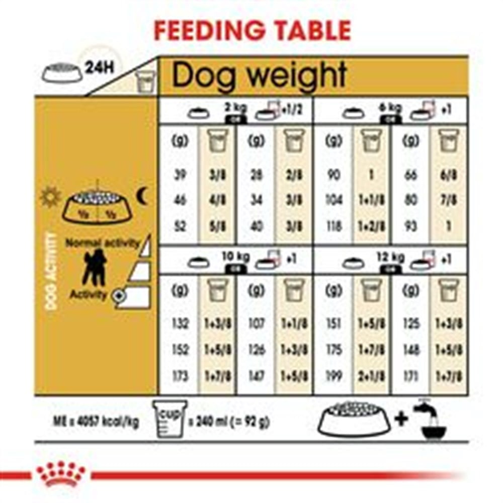 KOMPOZİSYON: Mısır, kurutulmuş kümes hayvanları proteinleri, bitkisel protein izolat*, hayvansal yağlar, pirinç, mısır unu, mısır gluten, hidrolize hayvansal proteinler, pancar küspesi, mineraller, soya yağı, balık yağı, mayalar ve ilgili parçalar, bitkisel lifler, frukto-oligo-sakkaritler, hodan yağı (%0,1), hidrolize edilmiş kabuklu hayvanlar (glukozamin kaynağı), kadife çiçeği özü (lutein kaynağı), hidrolize edilmiş kıkırdak (kondroitin kaynağı). İLAVELER (her kg için) Beslenmeye dayalı ilaveler: Vitamin A: 29500 IU, Vitamin D3: 800 IU, E1 (Demir): 40 mg, E2 (İyot): 4 mg, E4 (Bakır): 12 mg, E5 (Manganez): 52 mg, E6 (Çinko): 139 mg, E8 (Selenyum): 0,08 mg - Teknolojik ilaveler: Sedimanter kökenli klinoptilolit: 5 g - Organoleptik ilaveler: Çay özü (polifenoller kaynağı): 150 mg - Koruyucular - Antioksidanlar. ANALİTİK BİLEŞENLERİ: Protein: %30, Yağ: %19, Ham Kül: %5.5, Ham lif: %2,1. Her kg için: Omega 3 yağ asitleri: 8.5 g, EPA/DHA dahil: 3 g – Pentasodyum trifosfat 3.5 g. BESLENME TALİMATI: tabloya bakınız. Parti kodu, tescil numarası ve son kullanma tarihi için, ambalajın üzerine bakınız. Serin ve kuru bir yerde saklayınız. *L.I.P.: çok yüksek sindirilebilirlik özelliğinden dolayı seçilmiş protein.ROYAL CANIN TURKEY Evcil Hayvan Ürünleri Tic. Ltd. Şti. (İşletme Kayıt No: YK-TR-3400809) tarafından ithal edilmiştir. Adres: Esentepe Mah. Büyükdere Cad. No. 127 Astoria Kuleleri A-Blok Kat. 1 Şişli İstanbul Tel: 0850 333 92 22