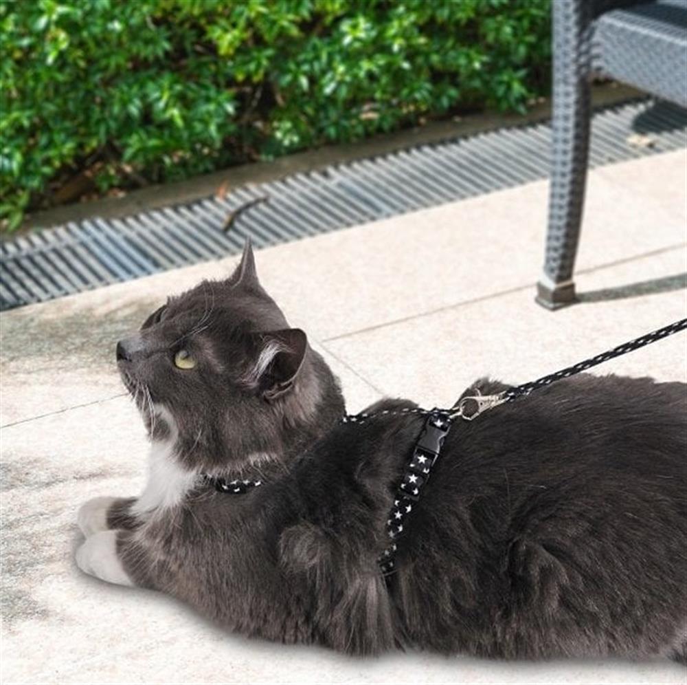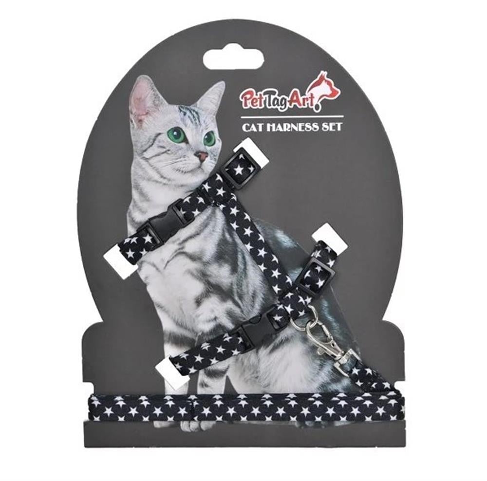Siyah Beyaz Yıldızlı Ayarlanabilir Kedi Göğüs Tasma Seti 10 mm 110 cm