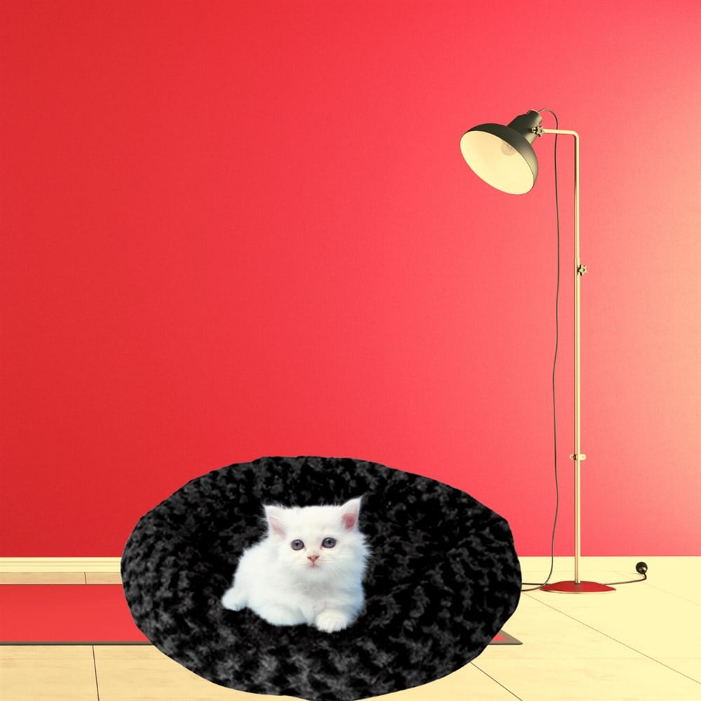 Simsiyah peluş kedi ve köpek yatağı, yumuşacık...