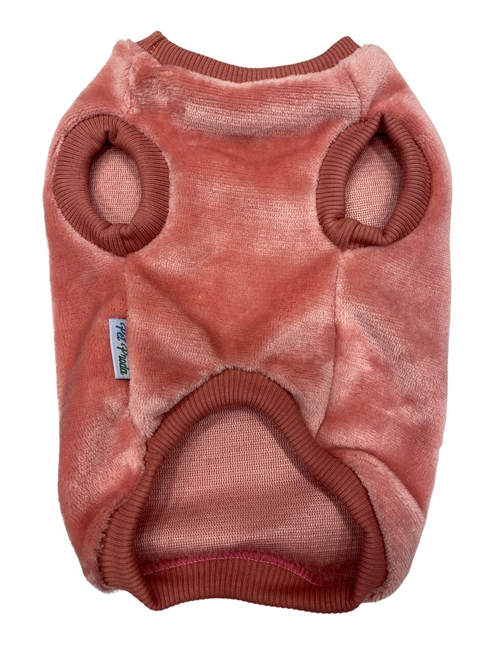 Düz somon rengi,  yumuşacık kadife sweatshirt Küçük ve Orta Irk Köpekler, kedi ve yavru köpeklere uygundur.