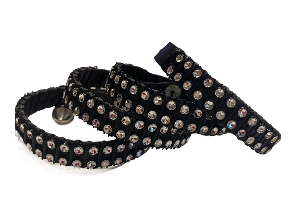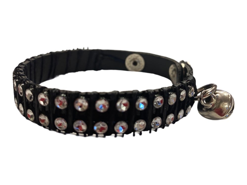Yavru Kedi, Yavru Köpek ve Çok Küçük Irk Köpekler için taşlı, zilli, siyah boyun tasması.
