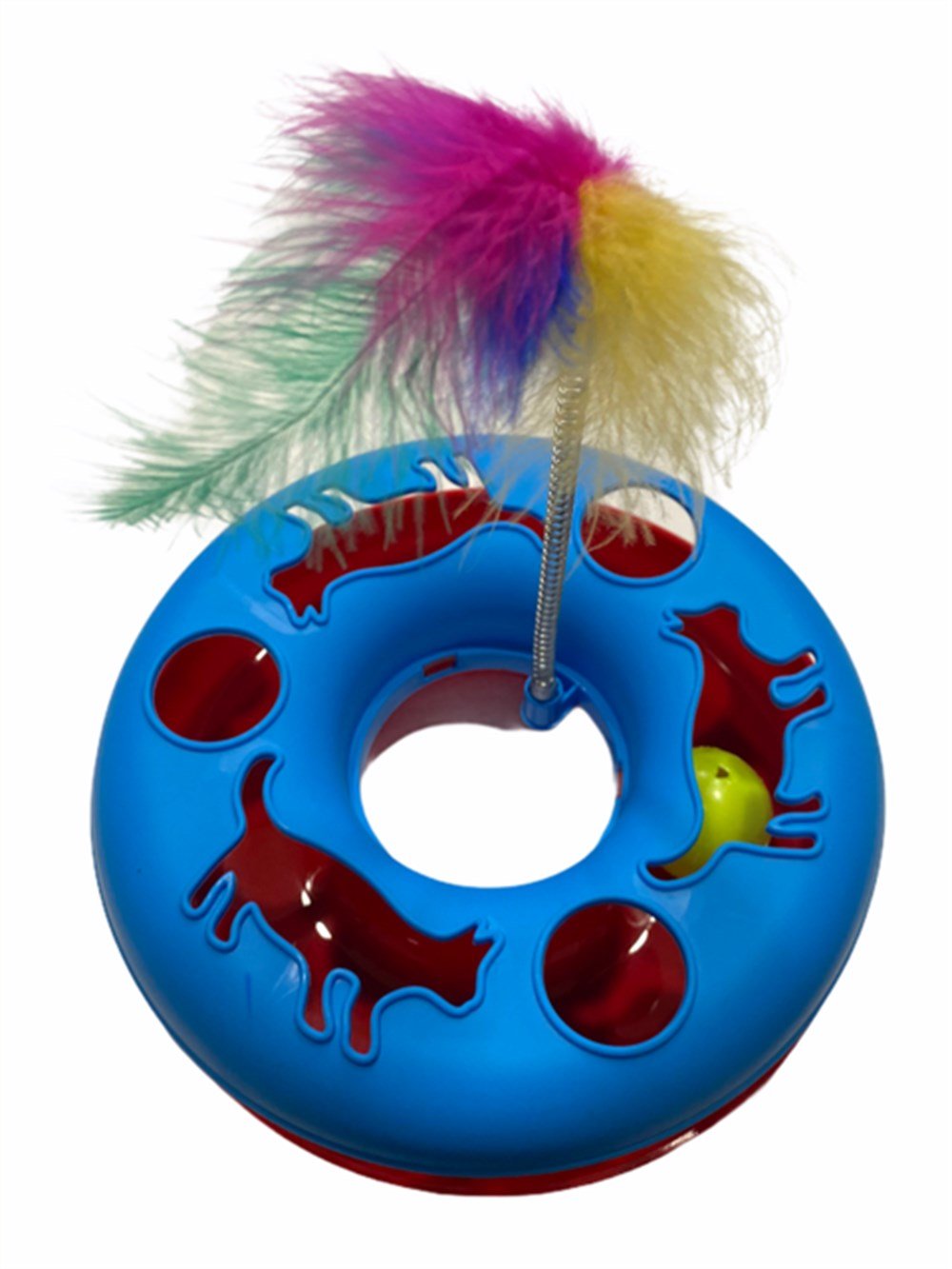 Oynamanın sonu yok! Sürekli kıpır kıpır içi zilli plastik bir topun yanı sıra sallanan tüyler, kedinizin aktif kalmasına ve avlanma becerilerinin artmasına yardımcı olur. Boyut (çap x Y): 24 x 10 cm