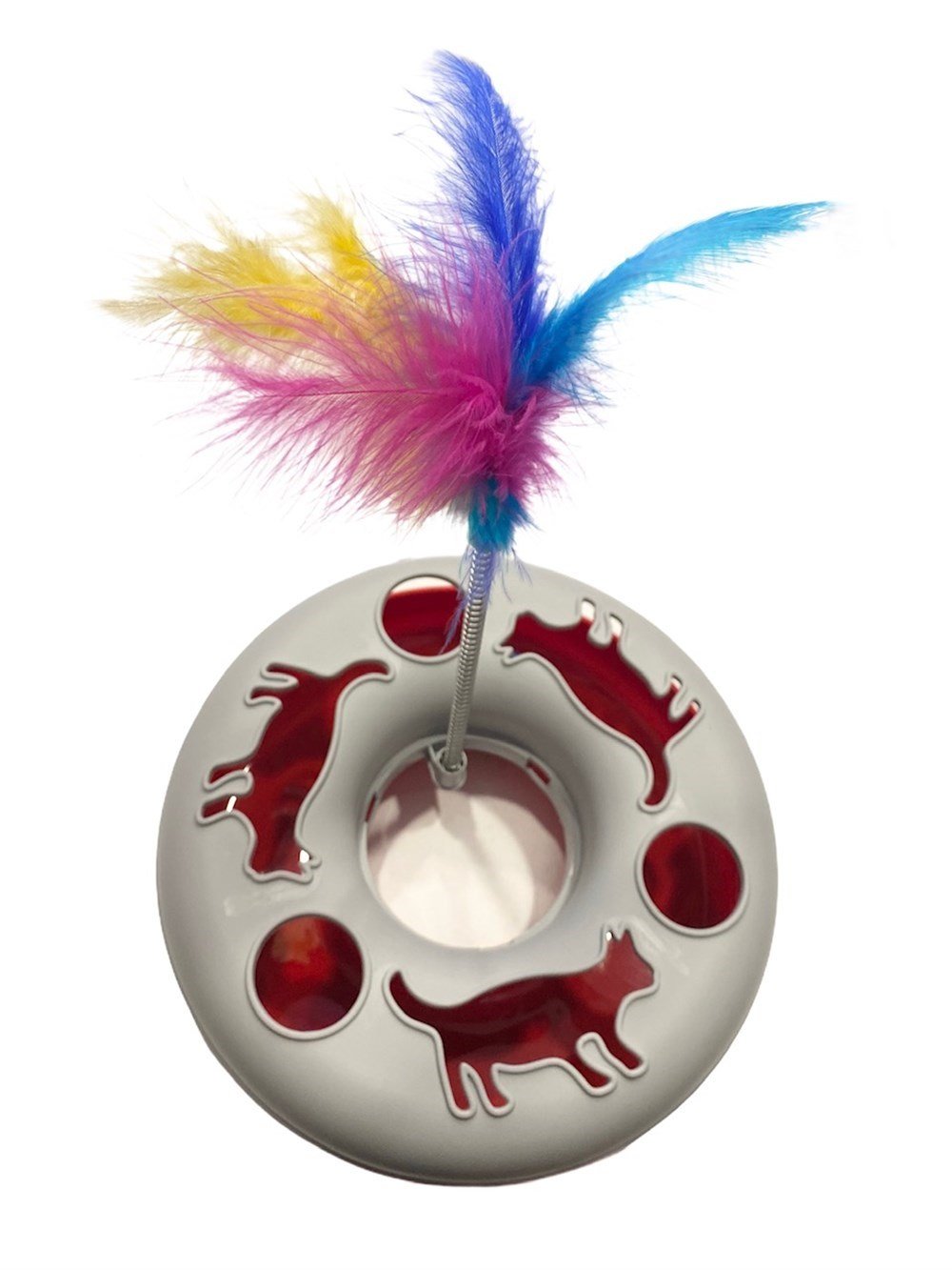 20 cm uzunluğundaki sallanan spiral, havada renkli tüyleri sallar ve kedinizi patileri veya burnuyla tüyleri dürtmeye teşvik eder.