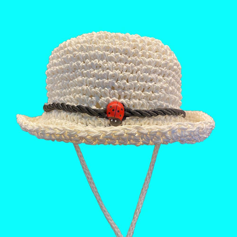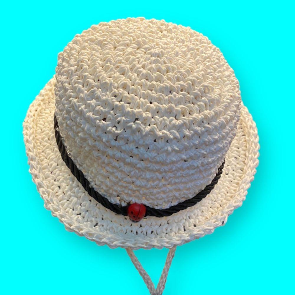 Naturel el örmesi, hasır şapkanın dokuması, fötr koruması ve alt tarafındaki bağlama detayı ile hem tatlı hem kullanışlı.