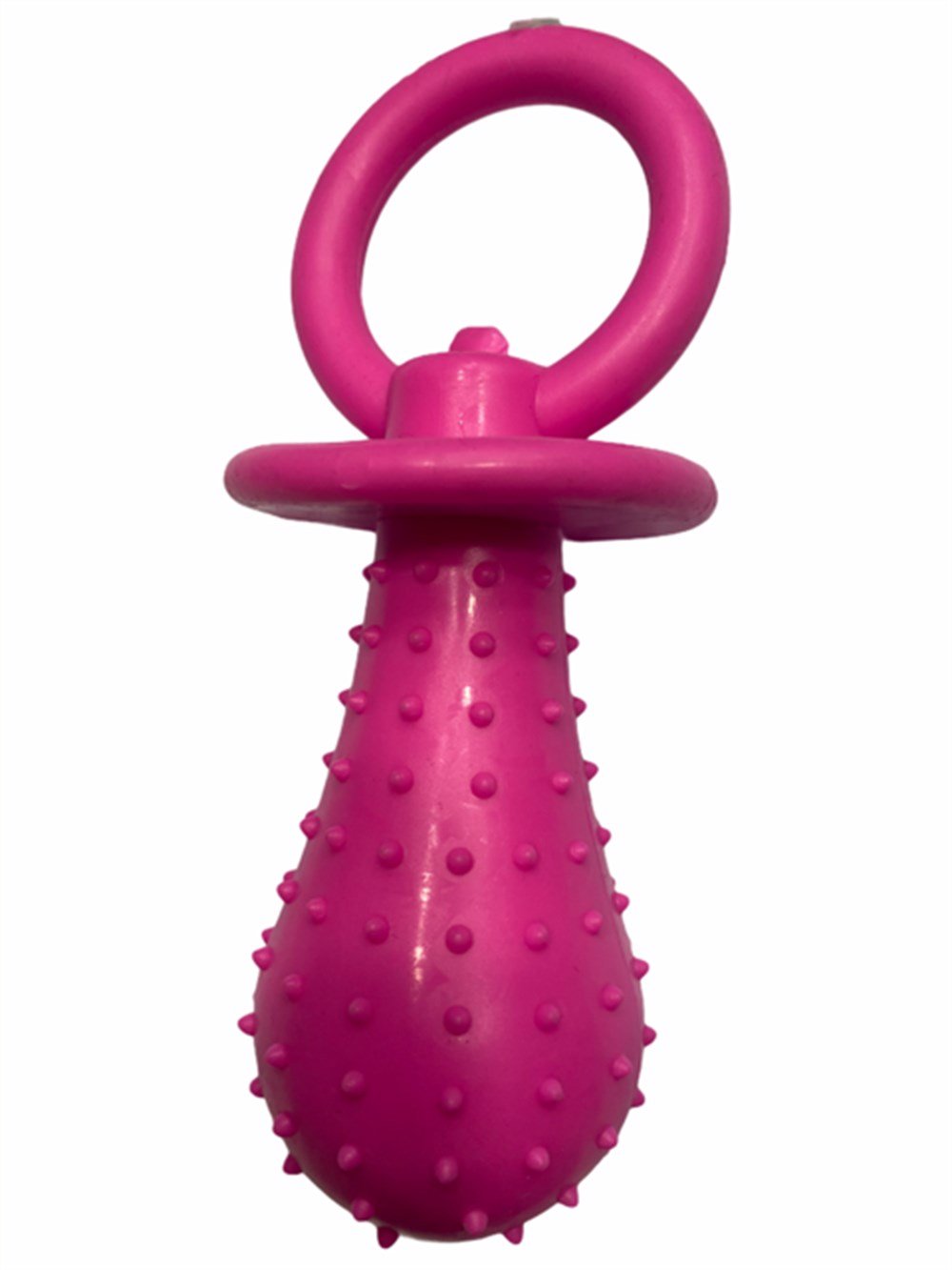 Zilli ve Kabarcıklı Pembe Kauçuk Emzik Köpek Diş Kaşıma Oyuncağı 14 cm